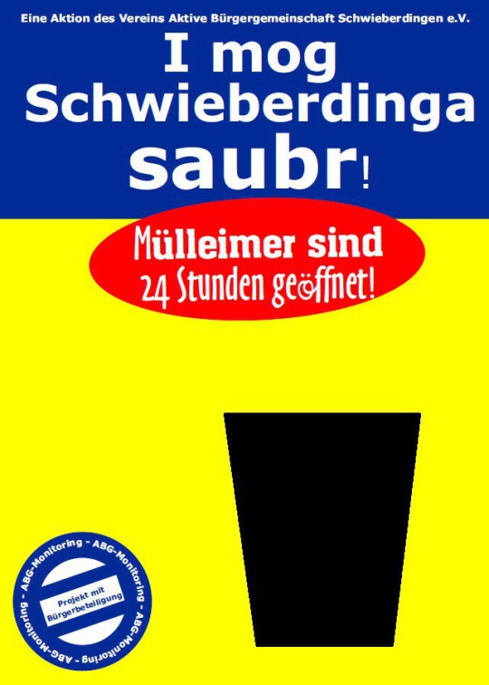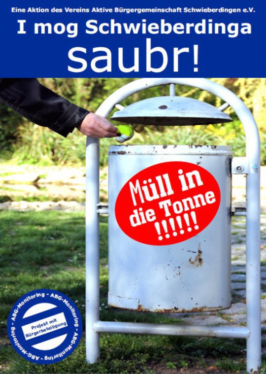 Ein Plakat alleine füllt noch keinen Mülleimer – es geht nur mit Ihrer Mithilfe! Deshalb ist diese Aktion eine Aktion mit Bürgerbeteiligung.