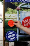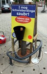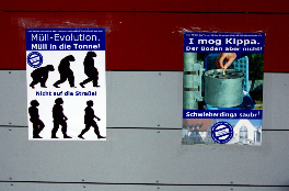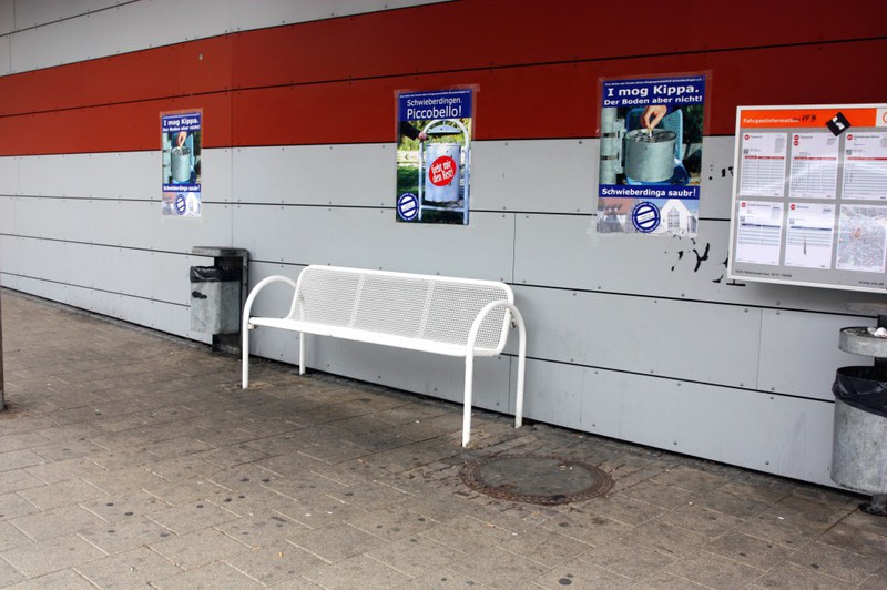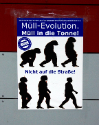 An der Bushaltestelle Mitte sind die wieder Affen los. Das wurde auch Zeit. Die Botschaft ist klar: Müll in die Tonne! Nicht auf die Straße!