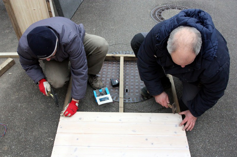 Am Samstag Mittag waren viele helfende Hände da, um den ABG Stand an seinem Bestimmungsort aufzubauen. Wenn Profis am Werk sind, dann kommt auch was G'scheites heraus. Perfekt.