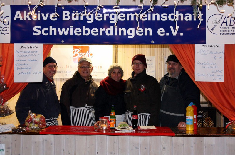 Es gab zum ersten Mal die Gelegenheit dazu - und wir haben Sie ergriffen. Am 07.12.2014 war die ABG mit einem eigenen Stand auf dem Schwieberdinger Weihnachtsmarkt vertreten. Viele Vorbereitungen sind im Vorfeld gelaufen, um einen schönen Stand und ein attraktives Angebot bieten zu können.