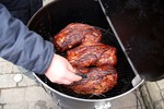 Am ABG-Stand gab es in diesem Jahr Winzer-Glühwein und zwar mit Granatapfel oder Chili, zudem Traubenglühsaft für die Kleinen. Der beliebte ABG Fleischweck mit wunderbar saftigem Schweinenackenbraten aus dem Smoker und Rote Würste rundeten unser Angebot ab. Unsere Hütte hat in diesem Jahr eine "Optimierung" erhalten. Fest verbaut wurde eine Ablage entlang der Rückwand und einer der Seiten. Somit gab es genügend Platz für die Glühweinkocher und Platz für die Anrichte für den Fleischweck. Bewährt hat sich auch die neu eingebaute Durchreiche an der Rückwand.