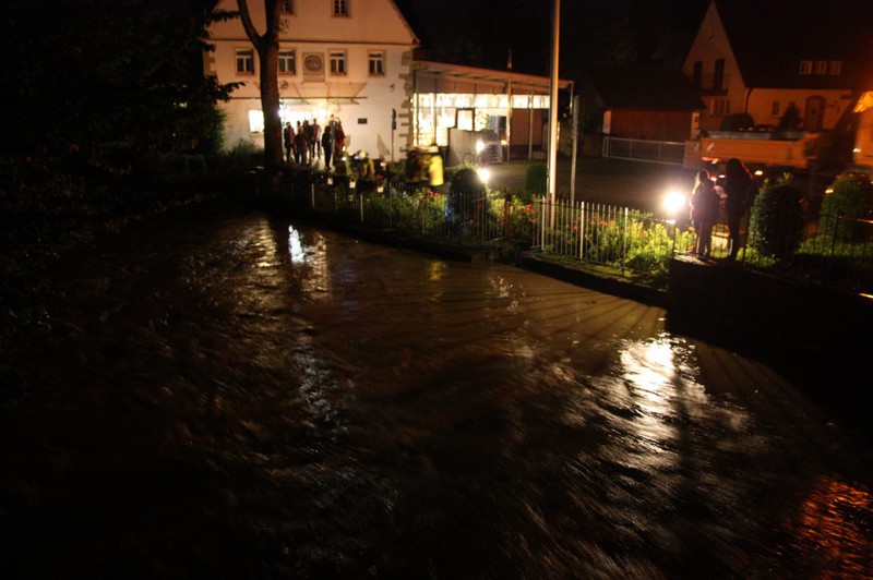An diesem Freitag Abend ab ca. 20 Uhr gab es wieder Hochwasser in Schwieberdingen. Die Hauptstraße stand unter Wasser und die Glems war übervoll. Die Glems ist aber nicht großflächig über die Ufer getreten wie beim Jahrhunderthochwasser im Jahr 2010. Dieses Mal verlief alles recht glimpflich und es gab keine ersichtlichen größeren Schäden. Vorsorglich wurden Sandsäcke verteilt und das Rathaus und die Bruckmühle gesichert.