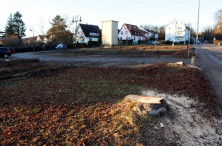 Wo einmal ein Kindergarten hin soll müssen zunächst die Bäume weichen. Bis auf vier Bäume sind nun alle Bäume am Parkplatz des Friedhofs gefällt worden.