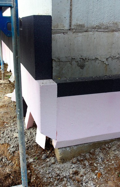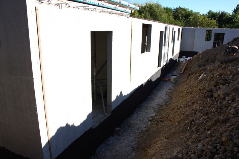 Das Erdgeschoss steht und die erste Decke ist aufgebracht. Ebenso gab es in dieser Woche Arbeiten an der Bauabdichtung. Der übliche schwarze Anstrich wird die Feuchtigkeit fernhalten.