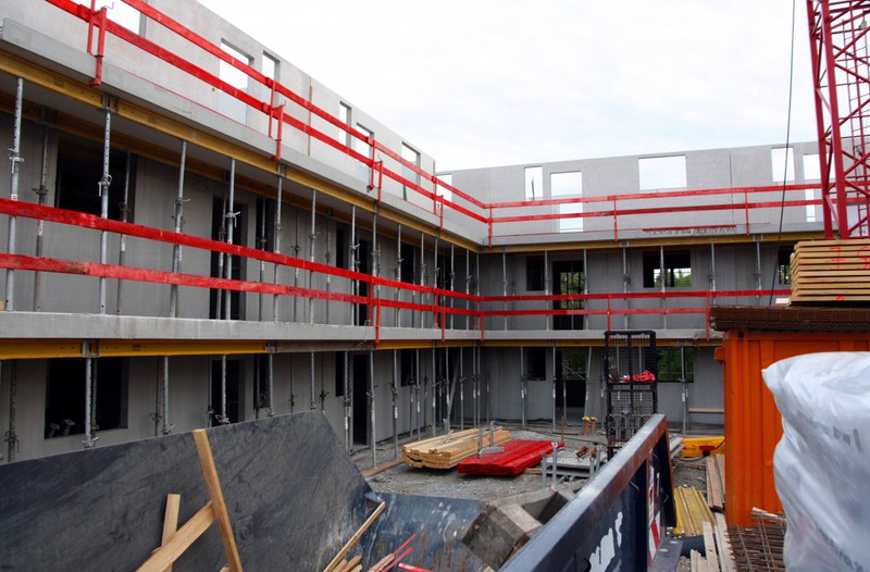 Der Rohbau ist nun fast abgeschlossen, es werden noch die Treppenhäuser fertig gestellt. Im Innenausbau hat sich auch schon einiges getan. Die Türen und Fenster wurden montiert. Der Großteil der