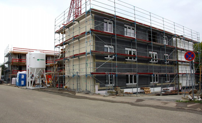 Der Fassadenputz ist in dieser Woche das Neue. Laut der Information im Blättle (s.u.) ist man im Zeitplan.