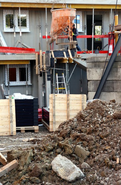 Es geht weiter bei den Betonierungsarbeiten. Diese Woche fokussierte man sich auf die vorderen Gebäudeteile.