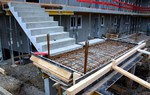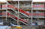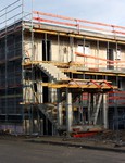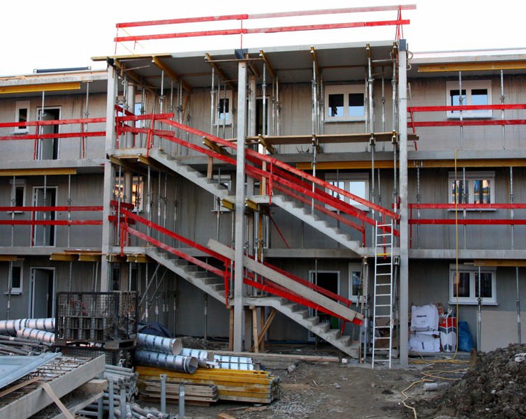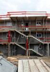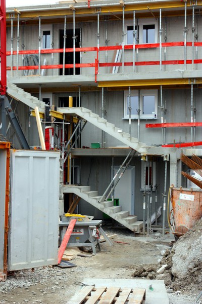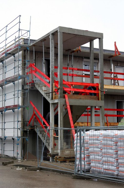 Es geht bei den Treppenhäusern weiter. Zudem gibt es vorbereitende Arbeiten für den Fassadenputz.