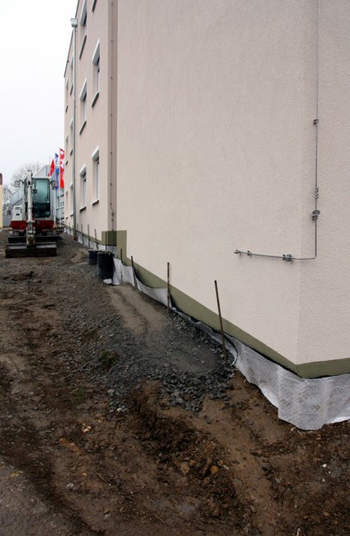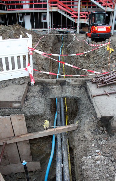 In dieser Woche wurden die Hausanschlüsse für die Versorgungsleitungen des Gebäudes hergerichtet. Eigentlich vom Zeitpunkt her recht spät, aber nicht zu spät. Mitte Januar 2017 soll das Gebäude fertig sein.