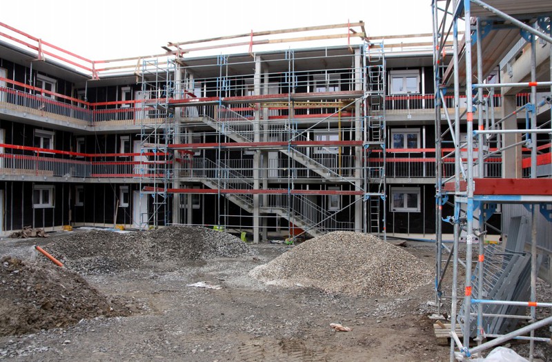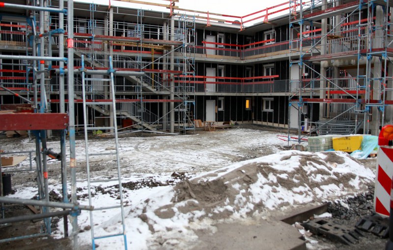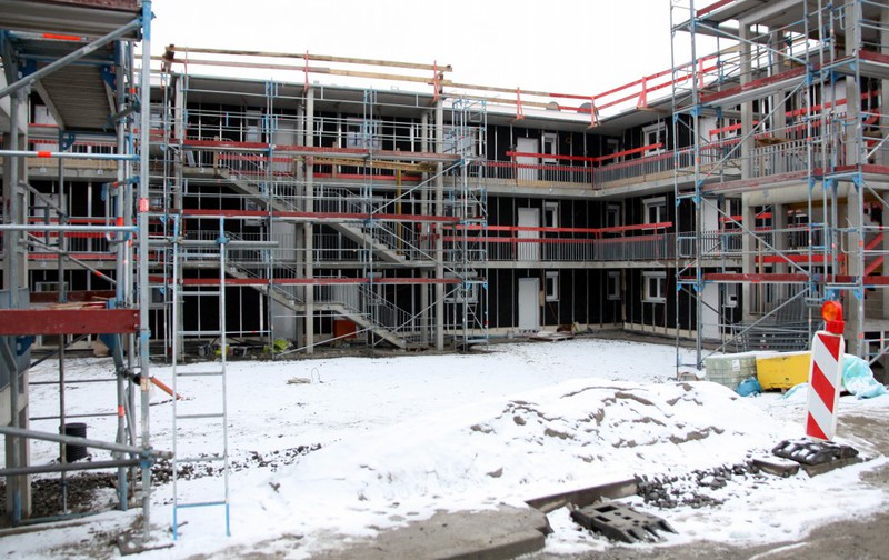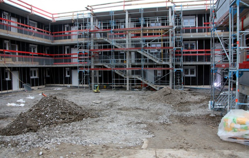 Die Woche vor dem Tag der offenen Tür. Es gibt kleine Fortschritte im Innenhof. Anfang März sollen die ersten Bewohner einziehen.