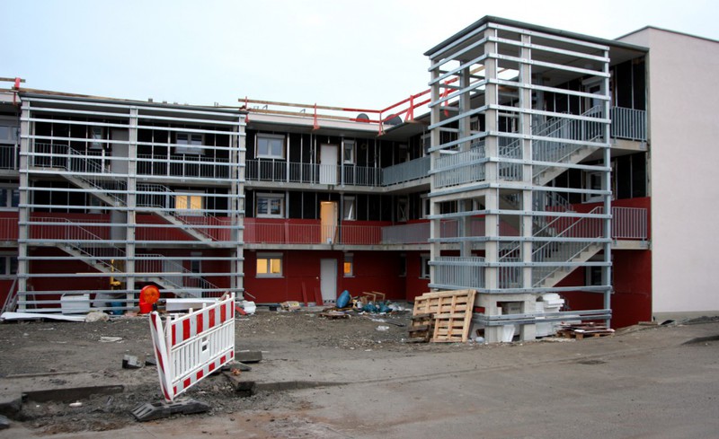 Wie bereits am 08.11.2017 im Ausschuss für Umwelt und Technik (AUT) mitgeteilt, sind die Sanierungsarbeiten an der Flüchtlingsunterbringung am Lüssenweg abgeschlossen. In dieser Woche wurden nun auch die Gerüste abgebaut. Damit ist der Abschluss der Bauarbeiten nun erreicht. Bewohner hat das Gebäude bereits seit Frühjahr dieses Jahres.