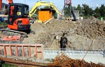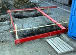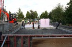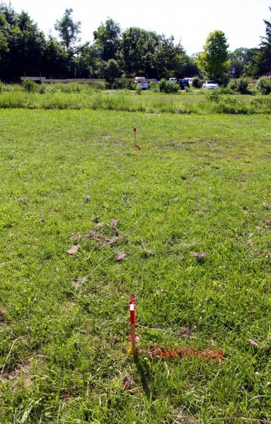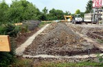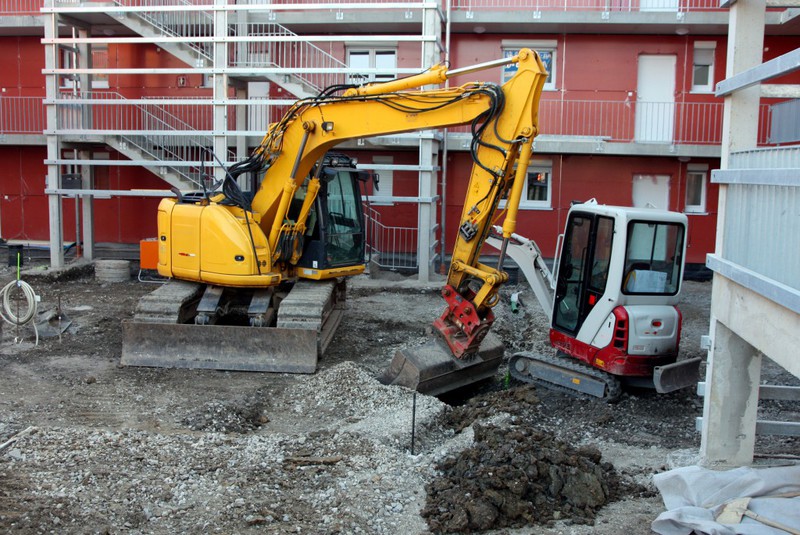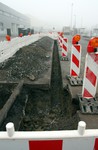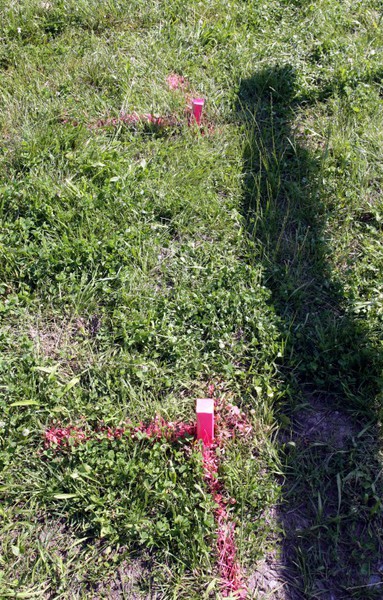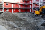 So langsam geht es an das Herrichten des Innenhofs. Bagger und Markierungsmarken sind schon da.