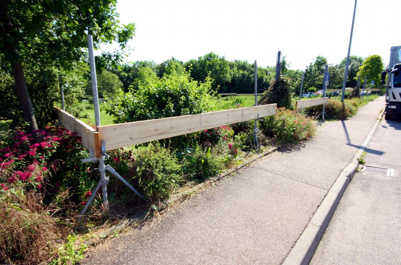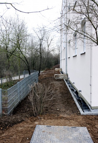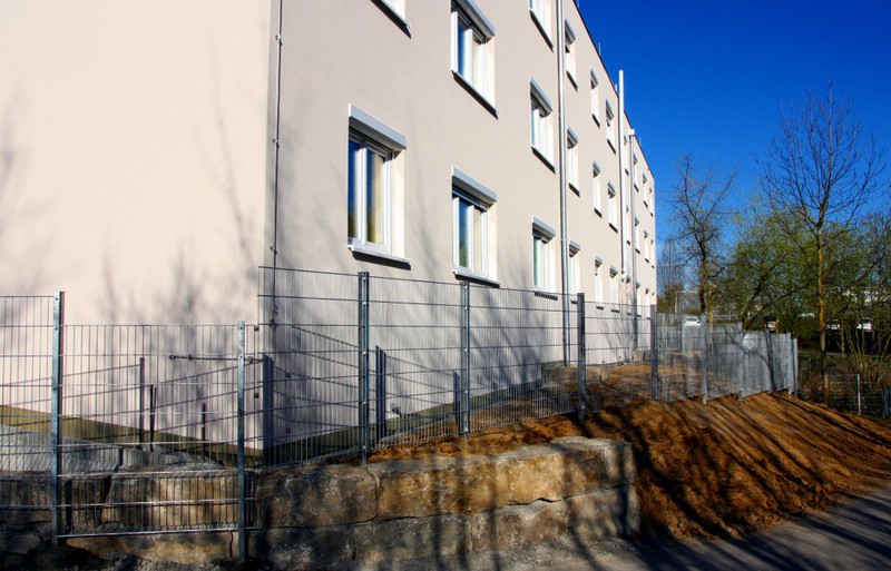 Ein kleiner Nachtrag zur Flüchtlingsunterbringung. Seitlich wurde noch ein Zaun angebracht und ein Pflanzbeet vorbereitet.