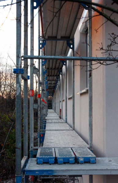 Es tut sich was an der Fassade. Zum einen gab es einen Anstrich einmal rundherum. Im Innenbereich laufen die Vorbereitungen für die Anbringung der Brandschutz-Isolierung. Hierfür werden eigenes Metallprofile angebracht.