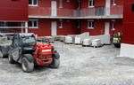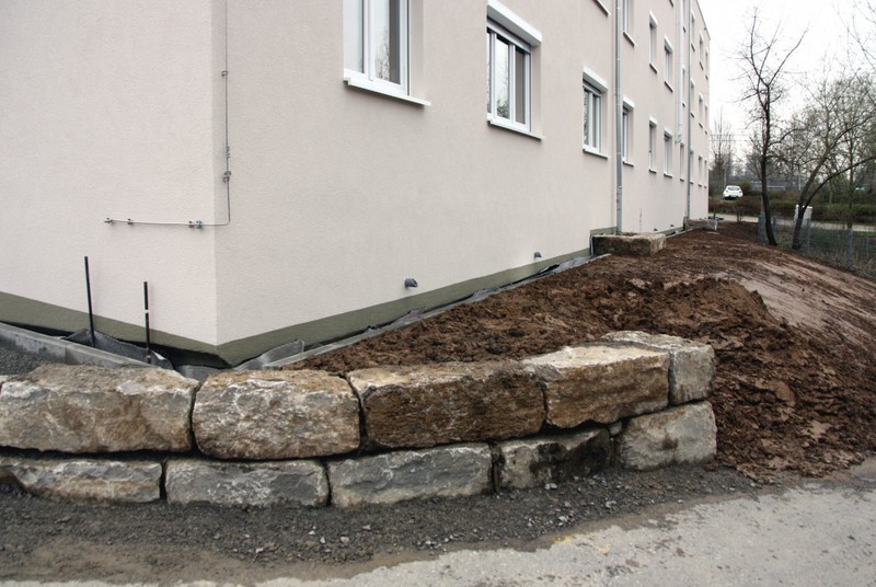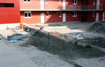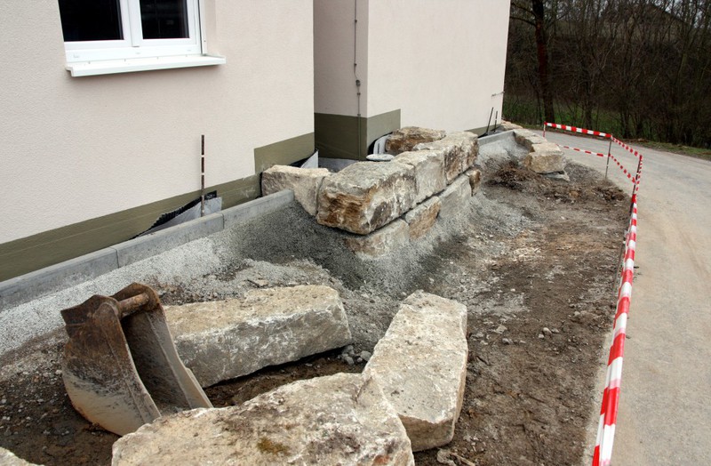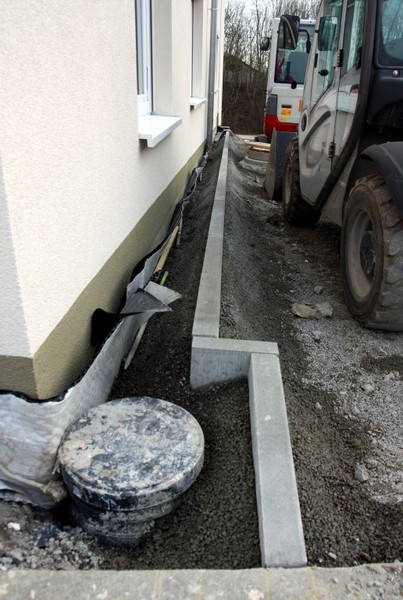 Das Haus ist an die Versorgungsleitungen angeschlossen. Jetzt wird der Innenhof hergerichtet. Erste Erdbewegungen haben bereits stattgefunden.