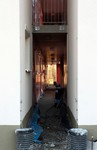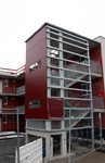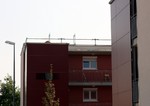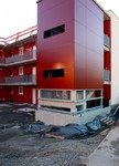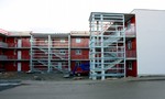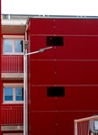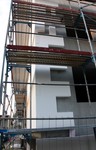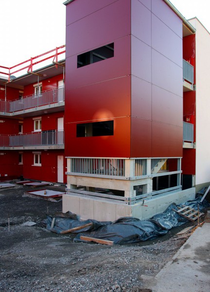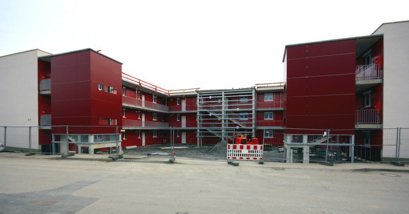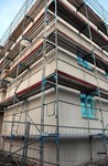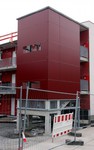 Die Treppenhäuser bekommen eine Verkleidung und im Innenhof wurde damit begonnen Platten für die Fassade anzubringen.