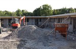 Die Betonarbeiten gehen zügig weiter. Im hinteren Gebäudeteil gab es noch Zwischenwände. Gegen Ende der Woche begannen Arbeiten an den vorderen Gebäudeteilen.