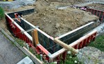 Nach Abschluss der meisten Erdarbeiten sind nun 2 Fundamente für die Gebäude fertig. Das dritte Fundament wird im Laufe der Woche fertig sein. Danach werden Leerrohre für die Wasser-/