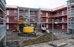 Das Gießen der Bodenplatte wird vorbereitet. Im hinteren Gebäudeteil ist man hierfür soweit.