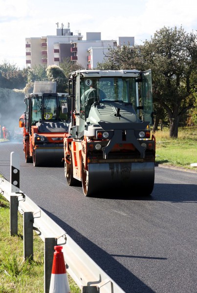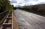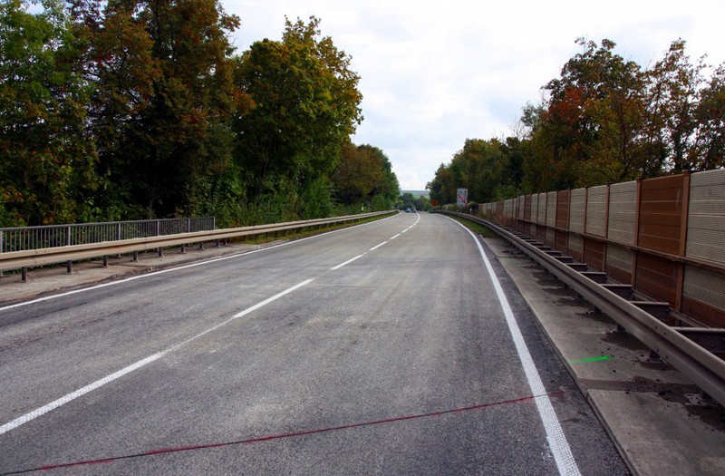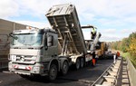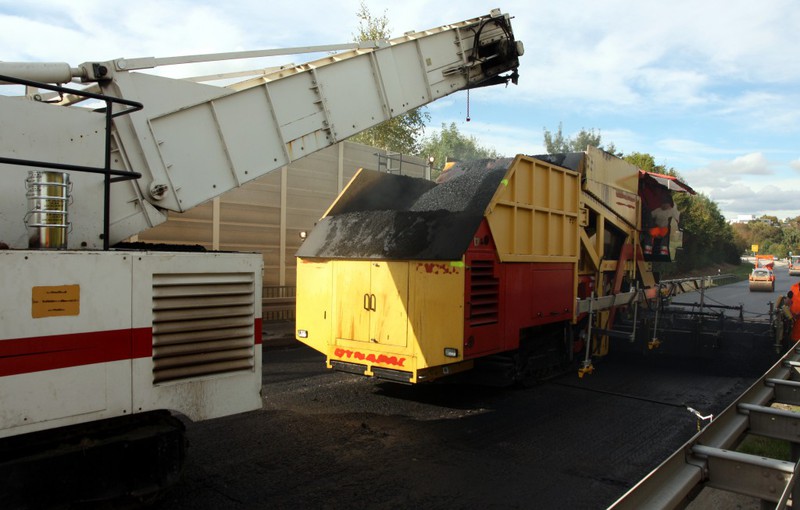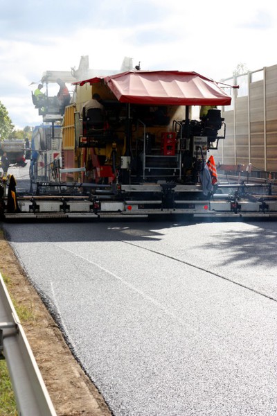 Vollsperrung der kompletten Fahrbahn des betroffenen Bauabschnittes je Wochenende notwendig. Der Einbau des Asphalts erfolgt nahtlos über die gesamte Fahrbahnbreite mit Großmaschinen. Eine
