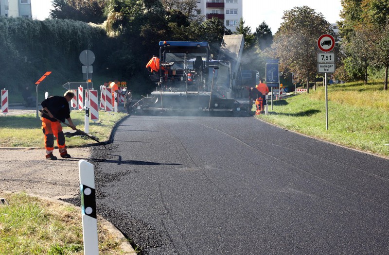 Vollsperrung jeweils eines Bauabschnitts von 800 m Länge wegen Einbau einer nahtlosen Asphaltdecke aus Kompaktasphalt mit Großmaschinen