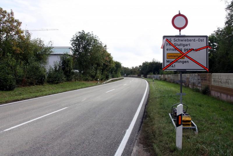 Ludwigsburger Straße zur Anschlussstelle Schwieberdingen-Mitte umgeleitet. Aus Richtung Pforzheim kommend erfolgt die überörtliche Umleitung ebenfalls über Schwieberdingen-Mitte und auf die
