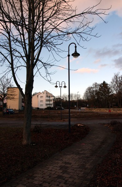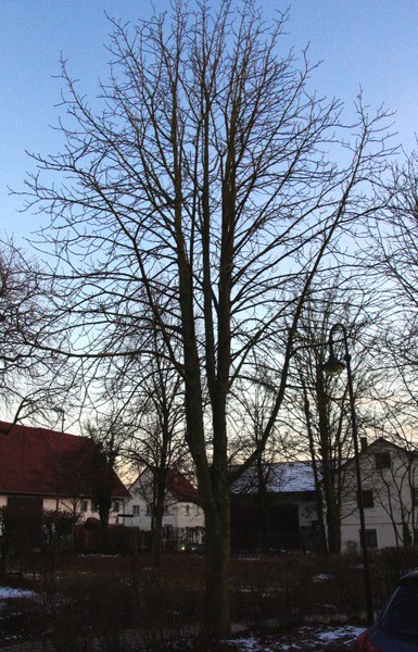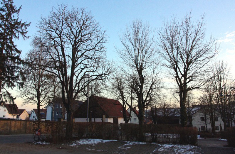 Die Baumfällungsarbeiten sind bereits angekündigt, bzw. wurden schon begonnen. Die Baustelle für die neue KiTa wird nun nach und nach eingerichtet werden. Deshalb soll noch einmal ein Blick auf die am Friedhofparkplatz vorhandenen Bäume geworfen werden. Das Abendlicht verbreitet eine passende Stimmung. Die Bäume müssen weichen, dafür gibt es dann eine neue Kindertagesstätte.