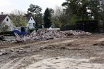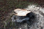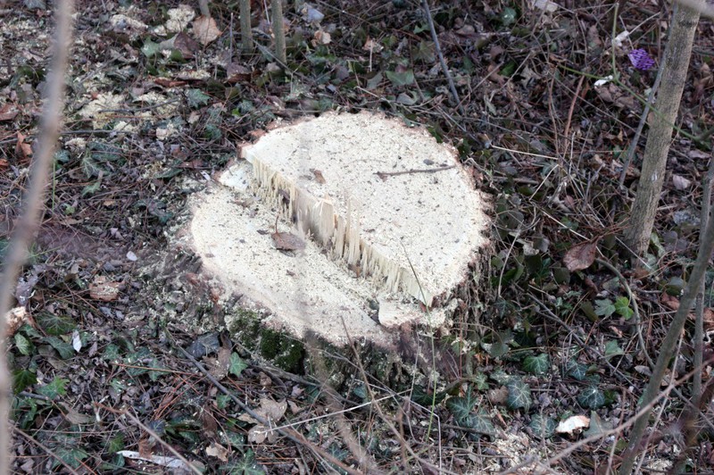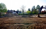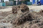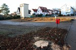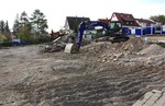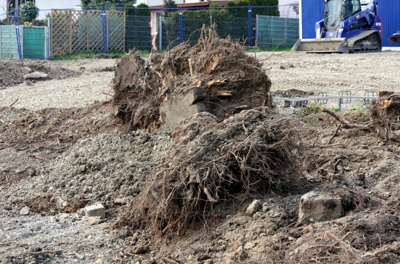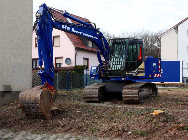 Die Baumstümpfe kommen raus. Der große Aushub lässt noch auf sich warten.