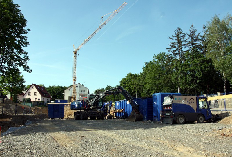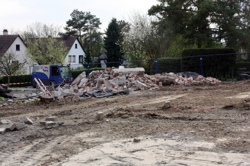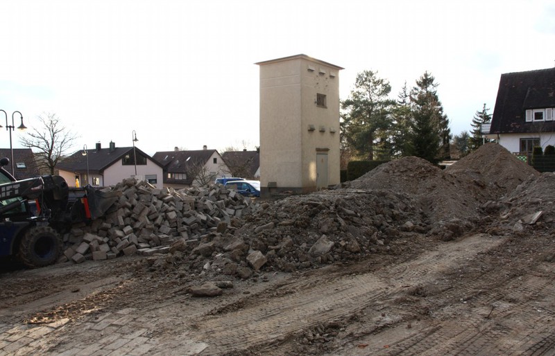 Ab dieser Woche geht es auf dem eigentlichen Baufeld los. Die Bagger werden aktiv. Die erste Aktion: Der Trafoturm ist weg. Mal schauen, ob es in der nächsten Woche schon in die Tiefe geht.