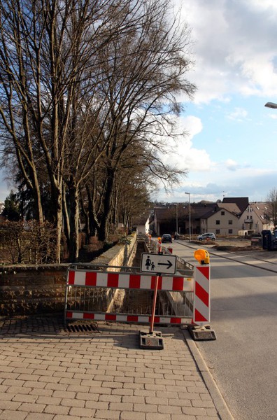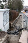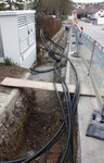 Die Arbeiten zur Verlegung der Traffostation dauern weiter an. Der Geweg neben dem Friedhof ist schon seit Wochen geöffnet, die neuen Kabel fehlen aber noch.