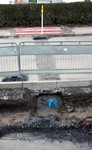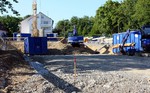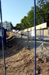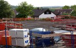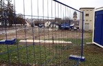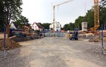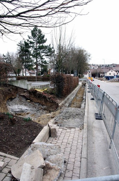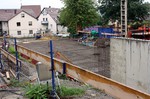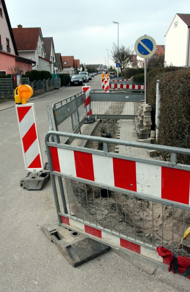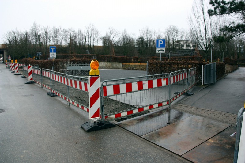 Fortschritte bei der Baustelle: Unter der Straße wurden Leerrohre verlegt, die Baustelle ist eingezäunt und der Ersatzparkplatz ist befahrbar.