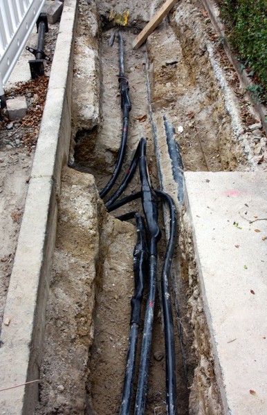 Der Platz für den neuen Trafo scheint gefunden. Der Graben für die Leitungen ist erstellt. Und der neue Parkplatz ist nicht befahrbar.