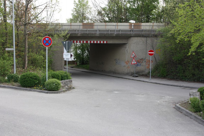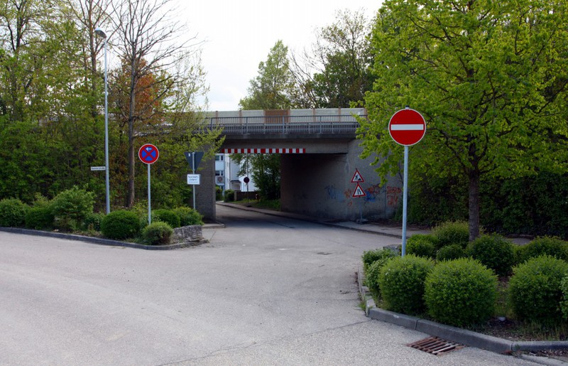 Zudem ist die Durchfahrt unter der B10 offen. Das Durchfahrt-Verboten-Schild ist zwischenzeitlich versetzt worden. An der bisherigen Stelle machte es auch wenig Sinn. Es steht jetzt oben direkt an der Daimler-Straße - damit auch niemand runterfährt.