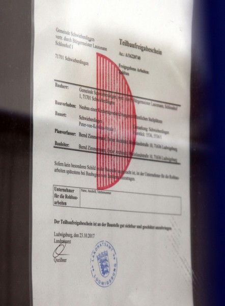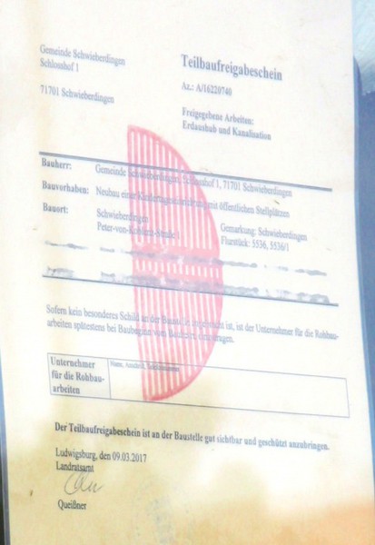 Weitere Baufortschritte sind zu verzeichnen. Die letzten Betonarbeiten laufen. Und es gibt mal wieder ein Bild von einem Baufreigabeschein.