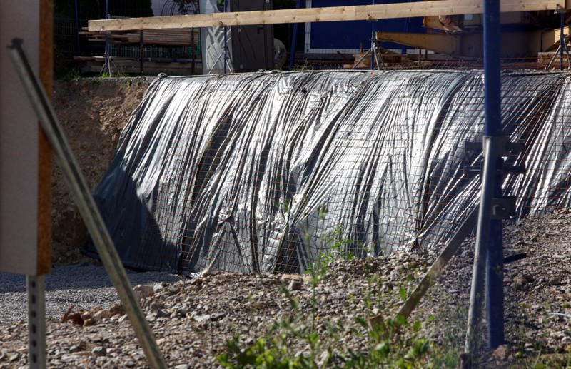 Es geht wieder ein Stückchen weiter an der Baustelle. Der Erdhügel ist weg, der Boden aufgeschüttet und obere Wand für eine Absicherung vorbereitet.
