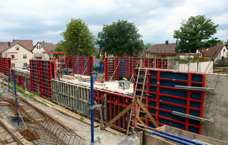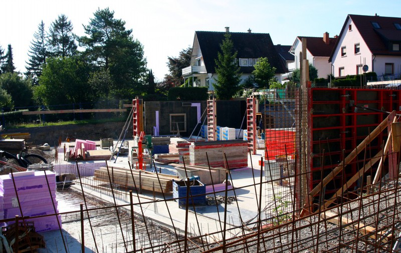 Die ersten Verschalungen für das Untergeschoss sind gestellt. Ab jetzt geht der Bau in die Höhe.