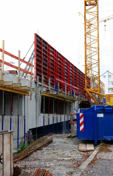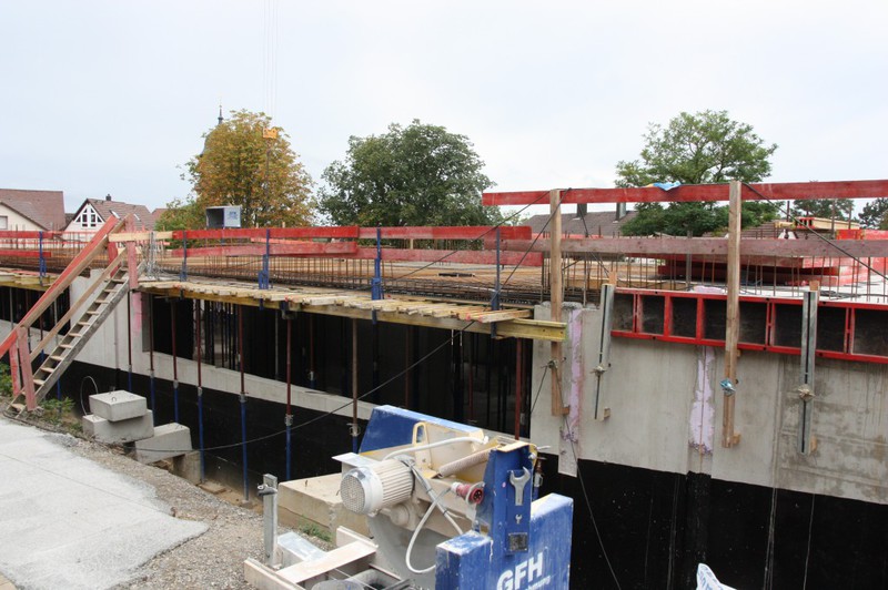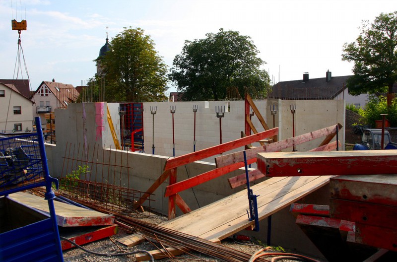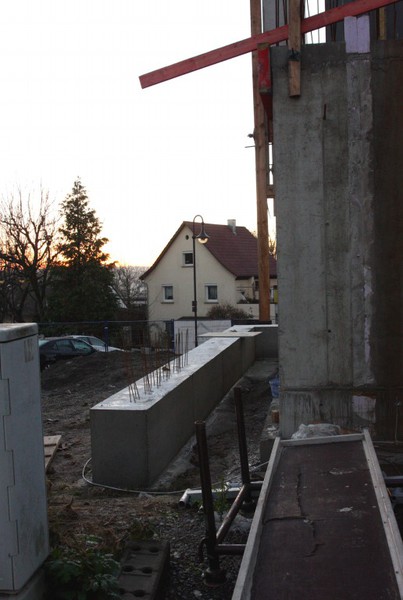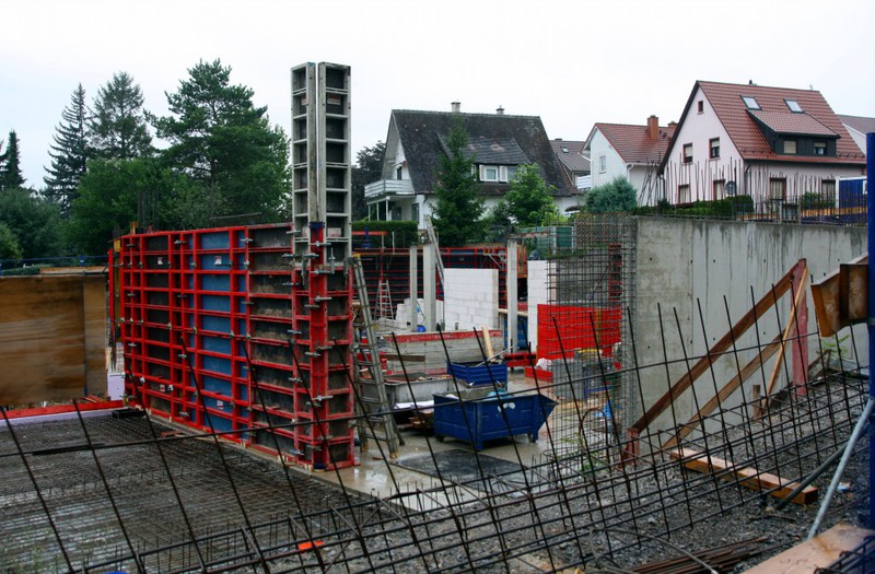 Die bereits in der letzten Woche begonnenen Arbeiten am südlichen Teil des Gebäudes wurden zielstrebig fortgesetzt. Ebenso steht das Betonieren der ersten Decke an. Es geht gut voran.