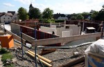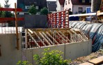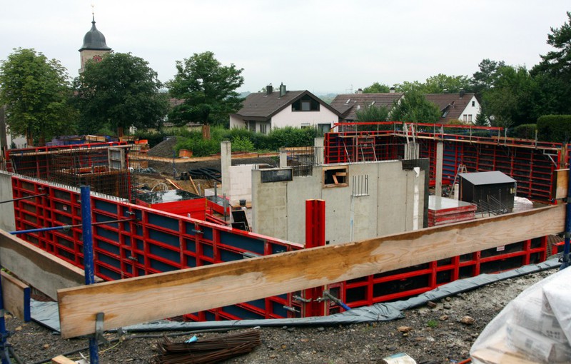 Es geht sehr rasch auf der Baustelle voran und das trotz "Bauferien", wie es die Gemeinde geschrieben hatte. Da es zu Beginn der Baustelle eher schleppend losging, können jetzt die Arbeiten auch zügig aufholen. Gut so. Man kann den Wänden beim Wachsen zusehen.
