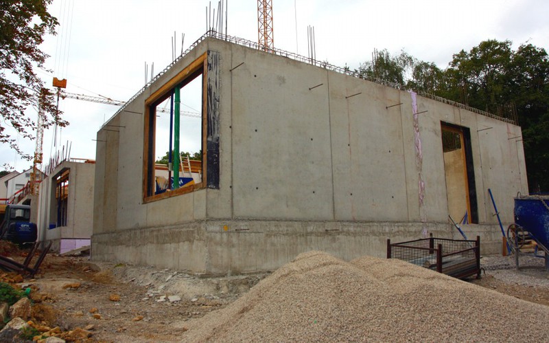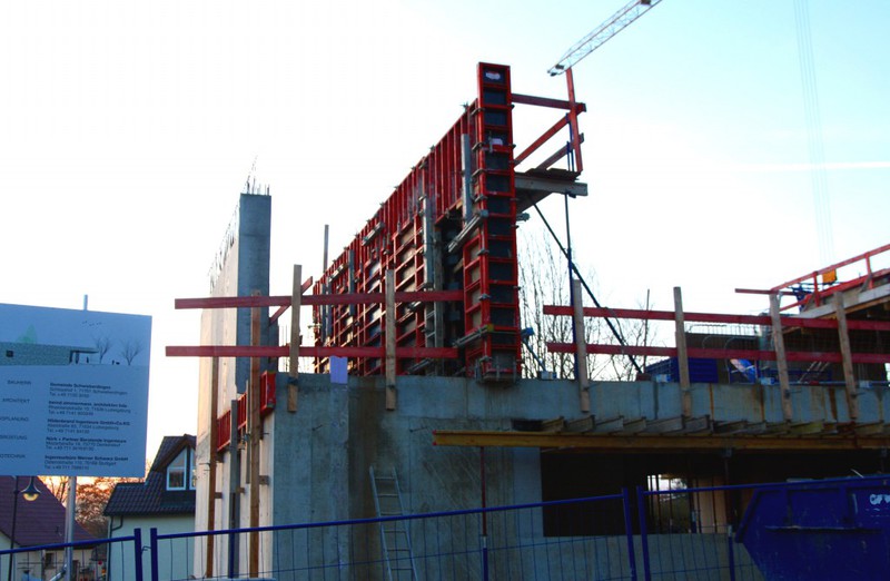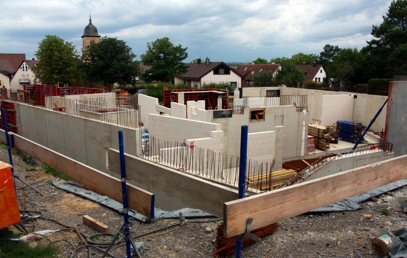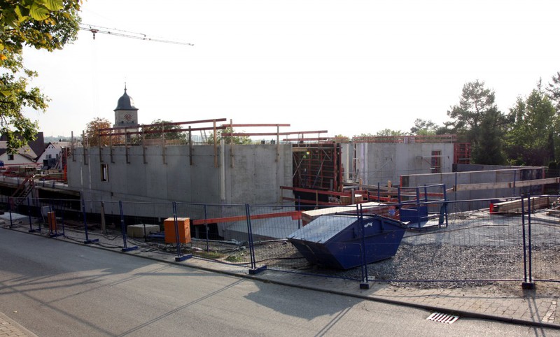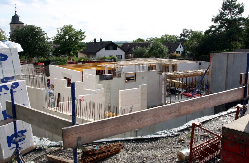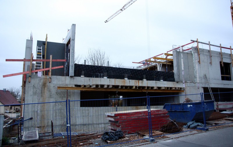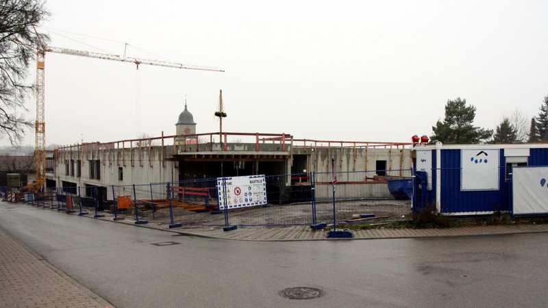 Wie die Gemeinde selbst schreibt geht die Baustelle gewohnt zügig voran. Das neue Gebäude wächst in die Höhe. Neben Beton kommen auch gemauerte Wände zum Einsatz.
