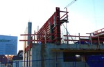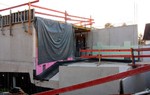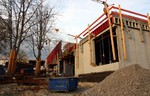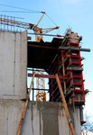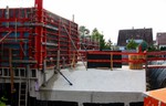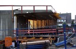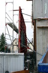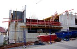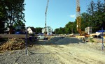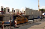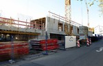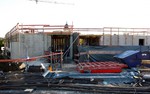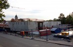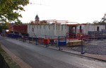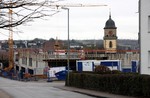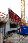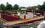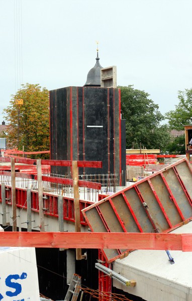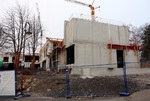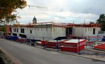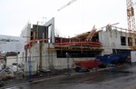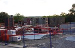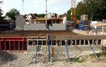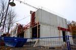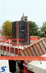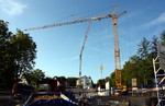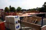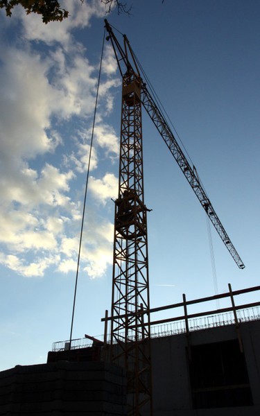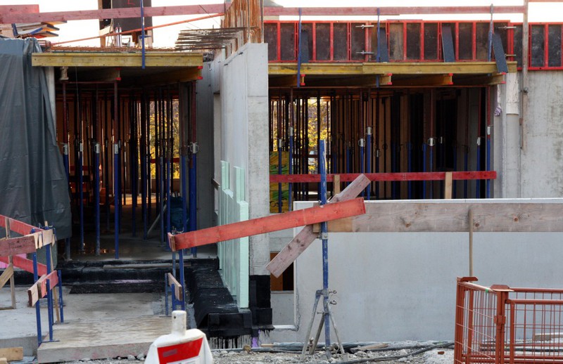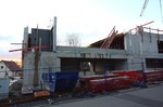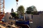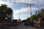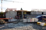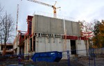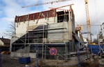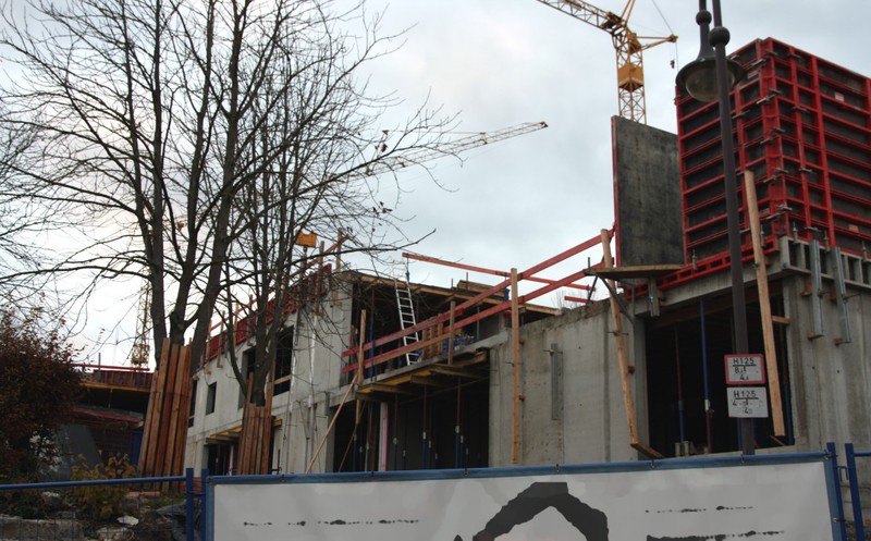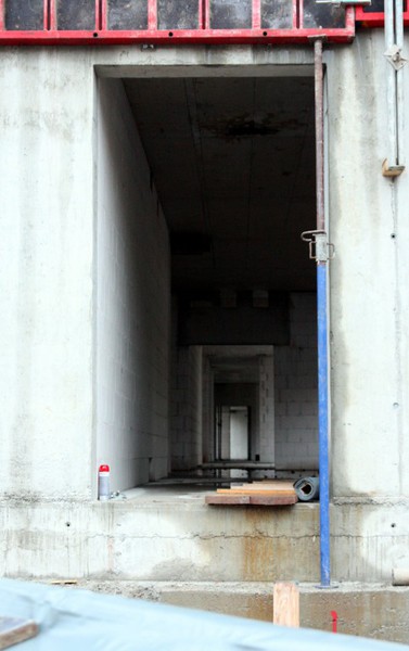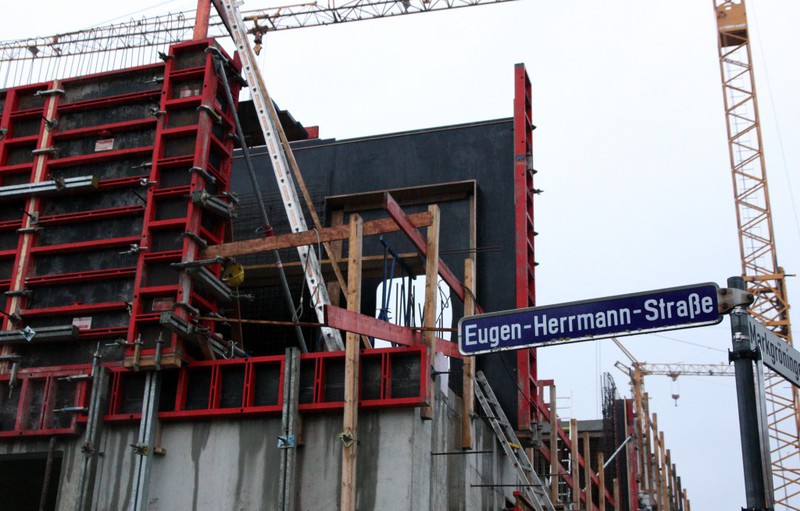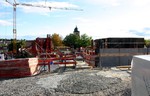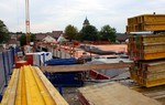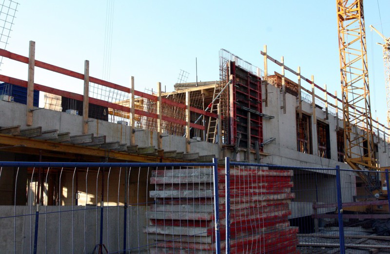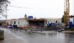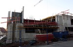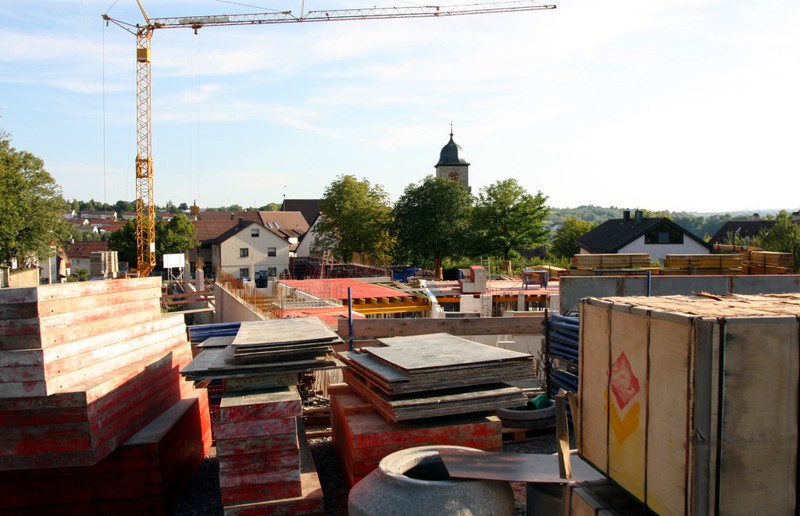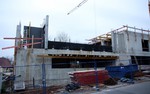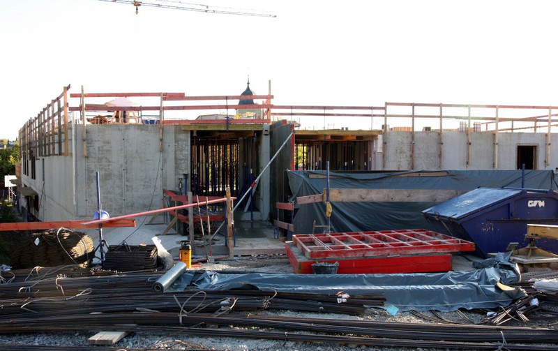 Man kann dem Wachsen des Gebäudes täglich zusehen. Auch am Samstag wird auf der Baustelle gearbeitet. Im nördlichen Teil des Gebäudes ist bereits die erste Decke eingezogen worden. Zu Wochenbeginn benötigte einer der Kräne eine Reparatur.