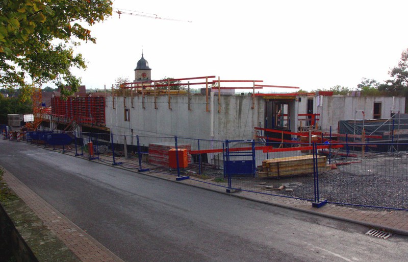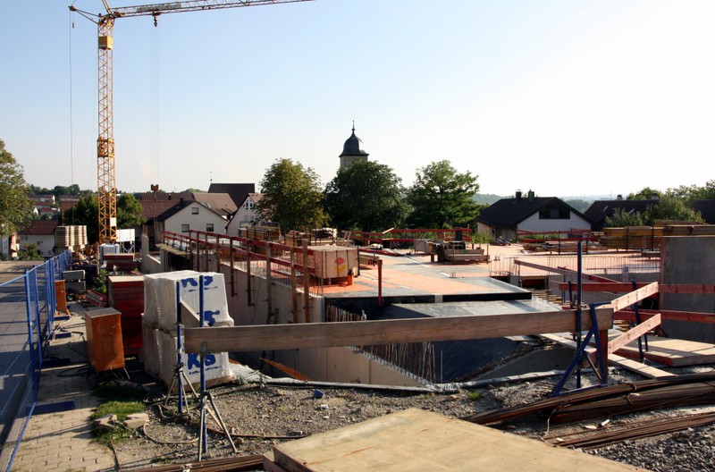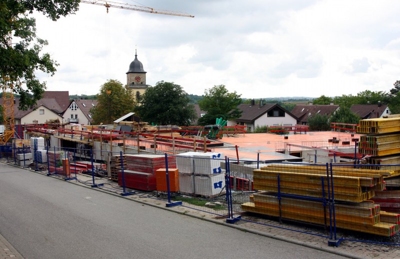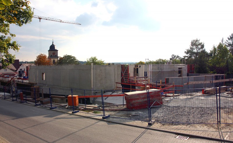 Die Arbeiten gehen an allen Orten am Gebäude weiter. Laut Aussage von Herrn Wemmer bei der letzten Gemeinderatssitzung soll der Rohbau bis Dezember fertig sein. Aus heutiger Sicht ist dieses Ziel wohl realistisch. Rein äußerlich ist der geplante umbaute Raum wohl demnächst erreicht.