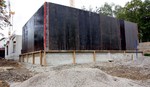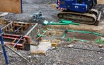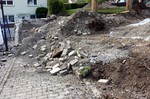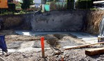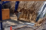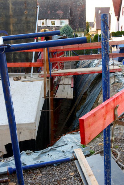 Die Arbeiten am Fundament schreiten voran. Es werden Abwasserleitungen verlegt und die Wand wird weiter abgesichert.