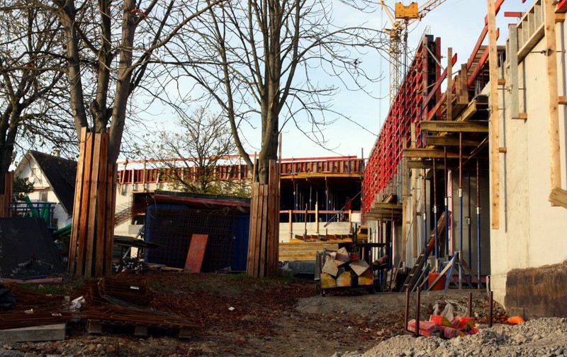 Zügigkeit kennt keine Grenzen. Auf der Baustelle geht es wie gewohnt flott voran. Die Arbeiten am südlichen Gebäudeteil haben die Decke erreicht und es wird sogar schon an der ersten Etage gearbeitet.