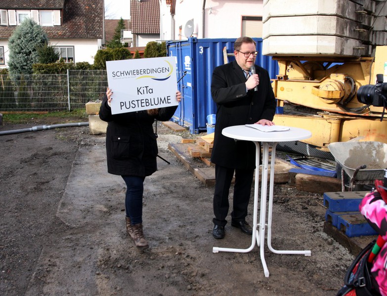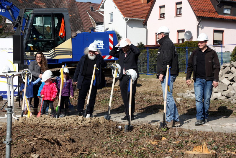 So richtig offiziell angekündigt war der Spatenstich zum Neubau des KiTa Oberer Schulbergs eigentlich nicht. Es stand ein kurzer Hinweis in der LKZ aber sonst gab es