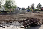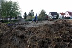 Die Gräben werden weiter geschlossen. Auf dem Baufeld warten die Bagger immer noch auf ihren Einsatz.