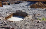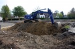 Das Loch wird größer. Die Bagger sind am Arbeiten.