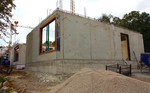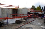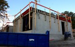 Das Gebäude wächst weiter. Die bereits in der letzten Woche angefangene Fassadenwand ist fertig und es werden bereits die Vorbereitungen für die nächste Decke getroffen.