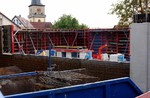 Die ersten Wände sind schon fertig. Im südlichen Bereich gehen die Arbeiten am Fundament voran.