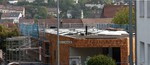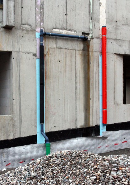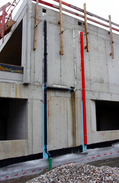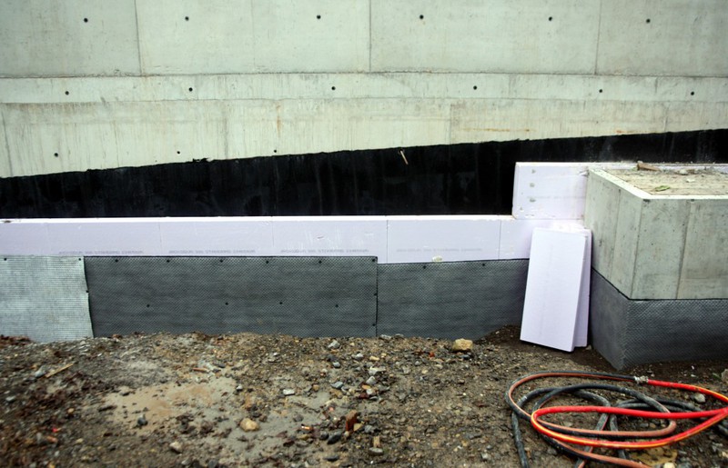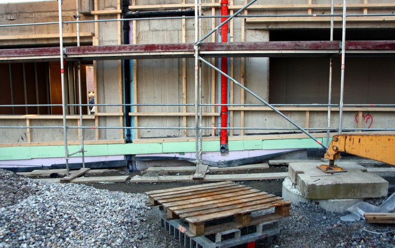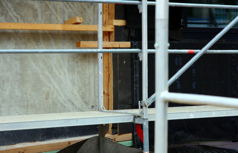 der Gebäudedämmung gearbeitet. Zumindest gibt es hier eine schwarze Folie.