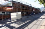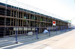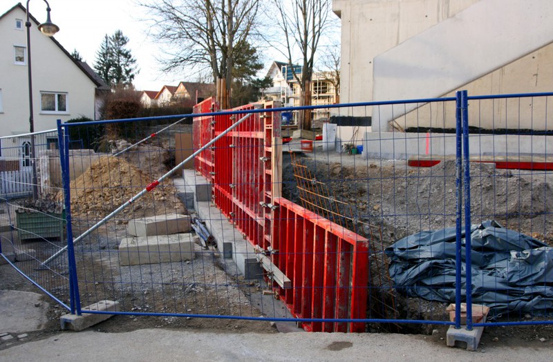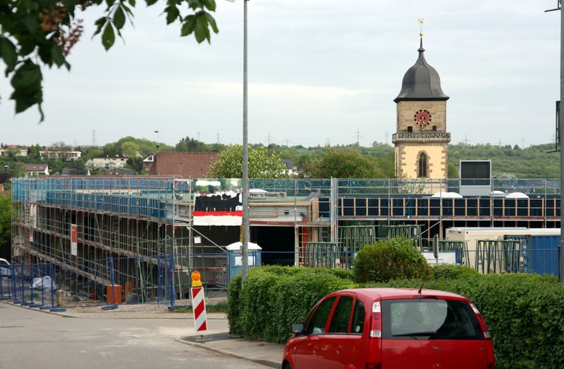 Ein weiteres Stück des Gerüsts ist entfernt worden, so dass die Arbeiten an den Parkplätzen für die KiTa Pusteblume nun auch entlang der Markgröninger Straße losgehen